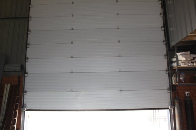 Porta seccionada Industrial, em painel duplo com isolamento em poliuretano, de abertura vertical, com automatização.