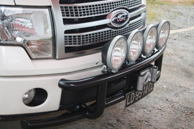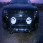 Grelha frontal para veículo (Santo António), executada em perfis tubulares de secção redonda com respectivos apoios para faróis e guincho.