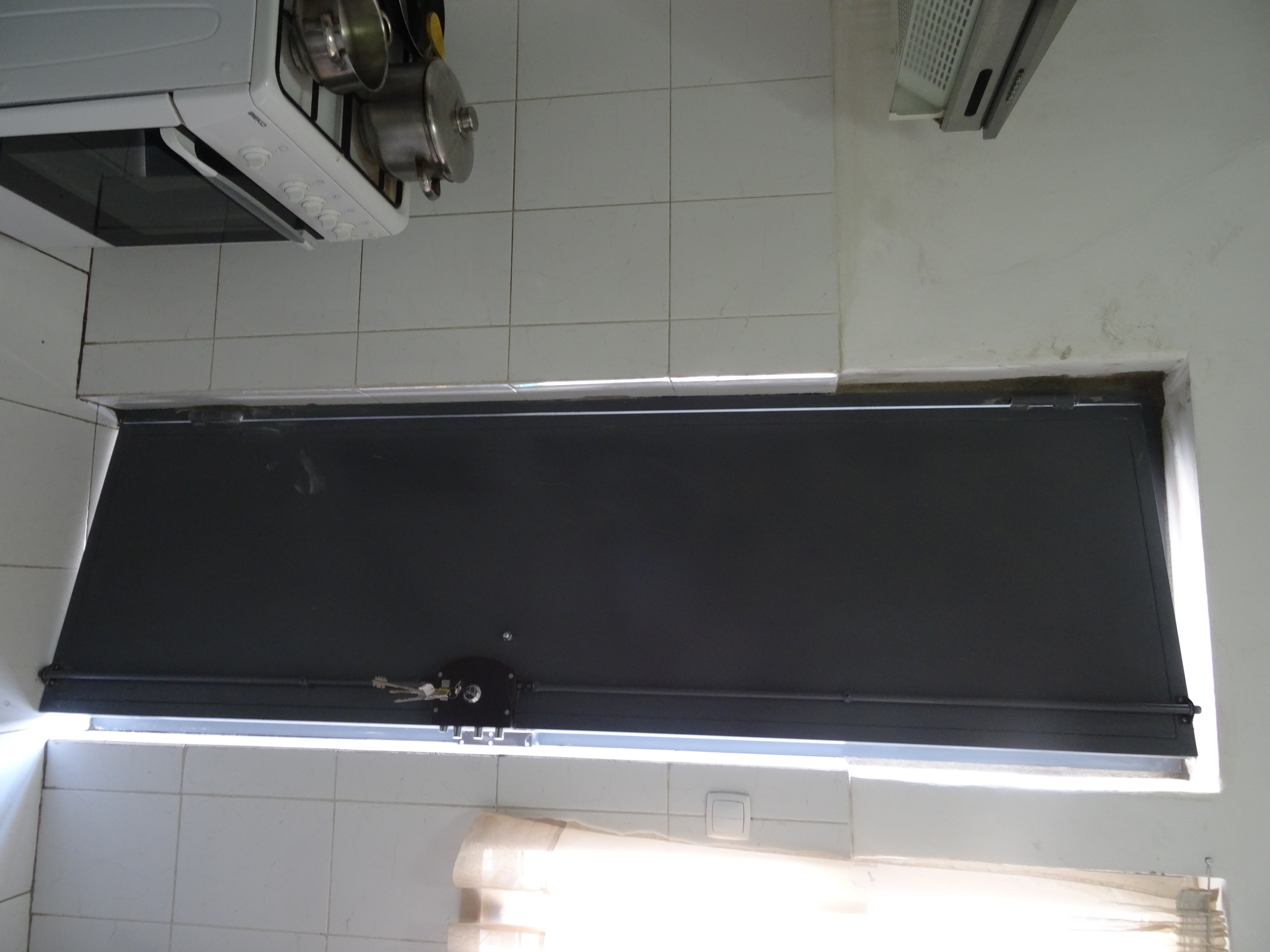 Porta de Batente uma folha executada em perfis de caixilharia, revestida com chapa Zincor e equipada com fechadura de segurança.